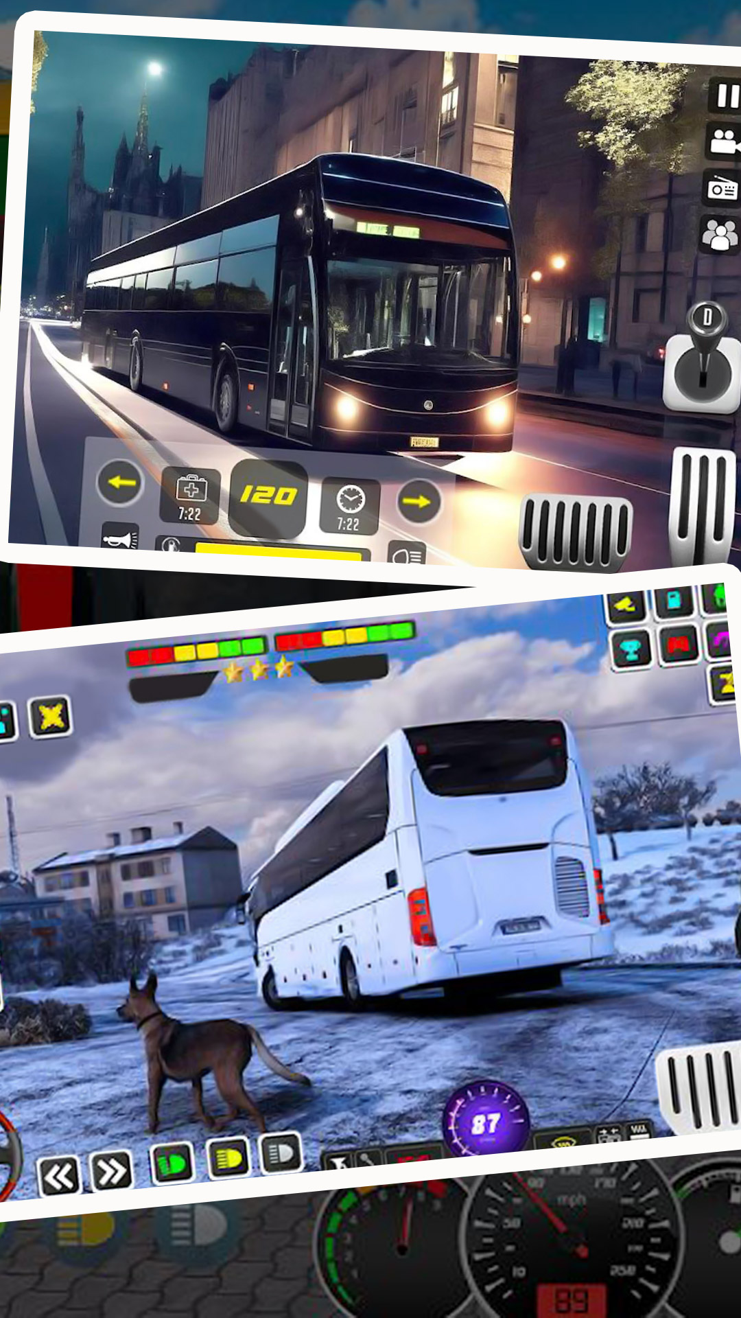 1、这个类型的游戏都是通过超大型客运巴士汽车的模拟驾驶玩法,去体现其中的精彩内容,