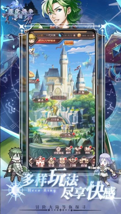 2、不断升级角色开启精彩的历险,不断强化角色获得强大战力。