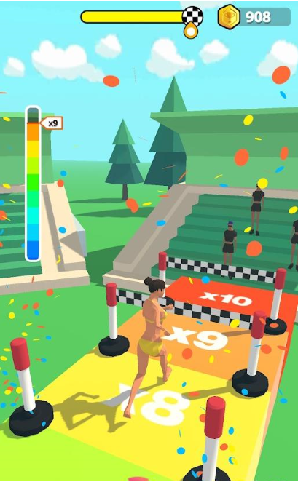 1.这是一场体育接力赛。运动开始后,运动员会自动前进,当运动员跑到绿区时只需点击屏幕。