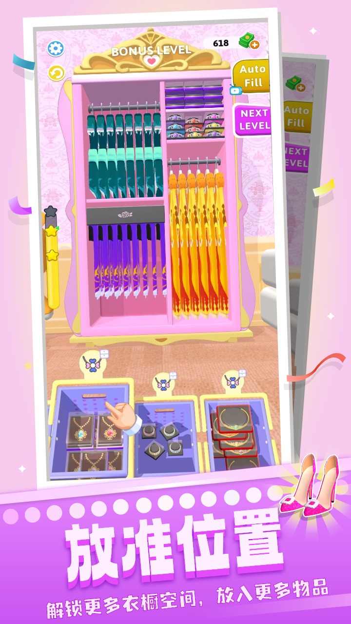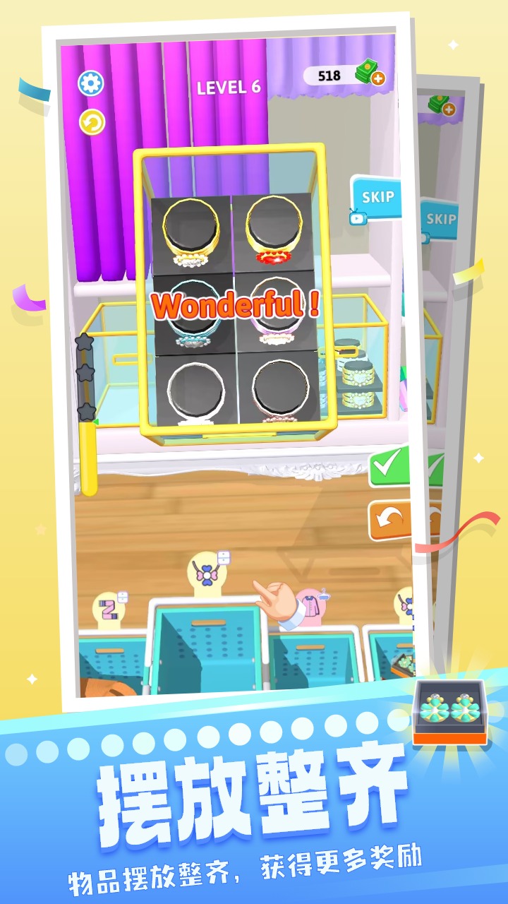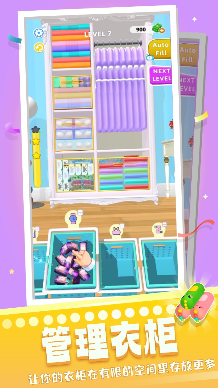 3、在规定的时间内完成挑战,解锁关卡,享受各种整理的乐趣。