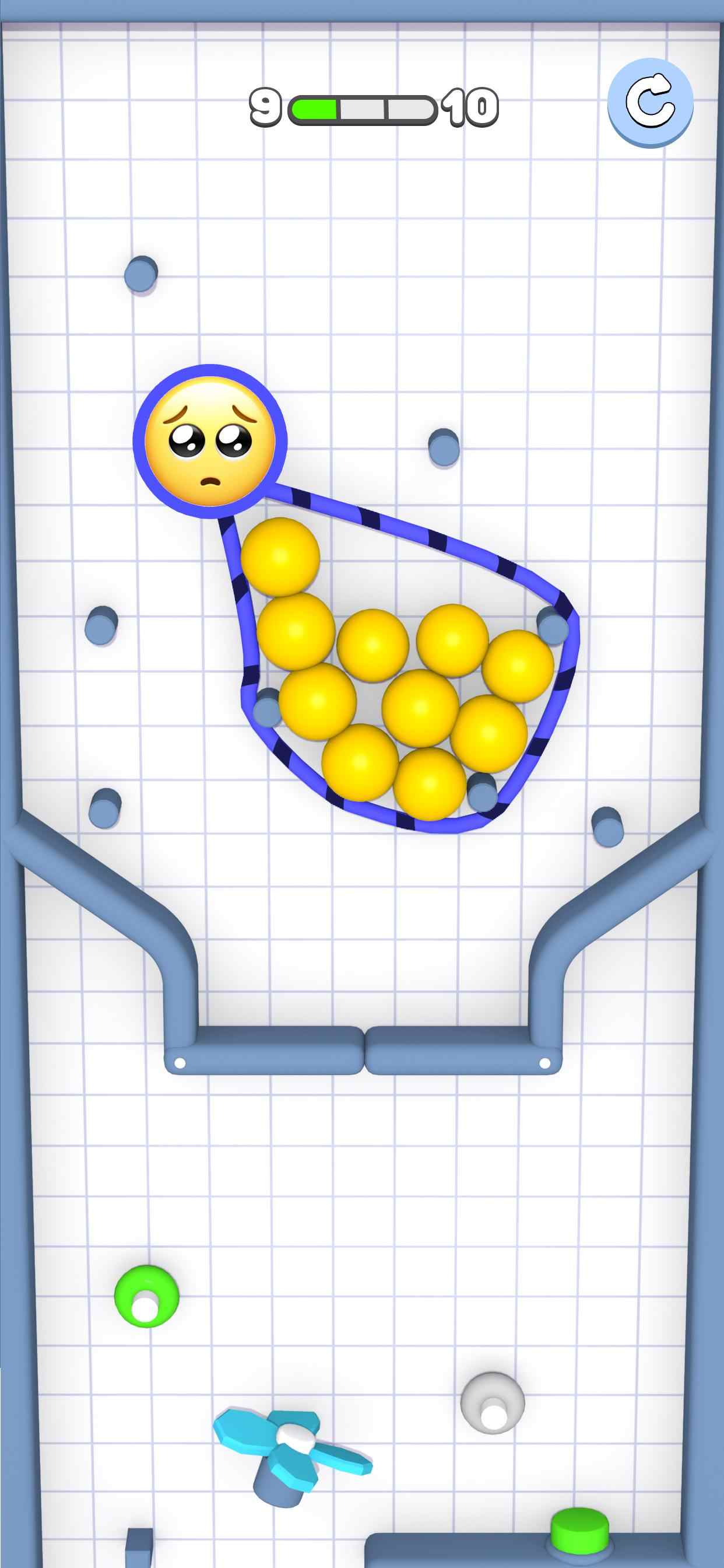 2、非常解压轻松的操作模式,采用弹弓的物理弹射模式,控制小球的运动。