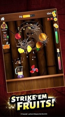 2、使用飞镖开始切水果,随着等级的提高速度会越来越快