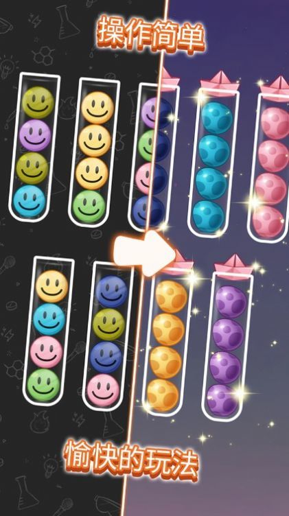 2、玩法简单易懂,带来了各种刺激有趣的球类排序挑战。
