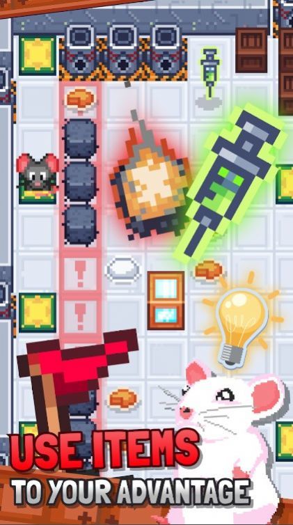 2、老鼠与激光中利用场景中的道具吸引激光发射器注意力,创造安全通道。