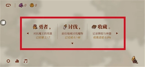 2、进入游戏后,在正中间能够看到勇者,以及“讨伐”和“收藏”选项。