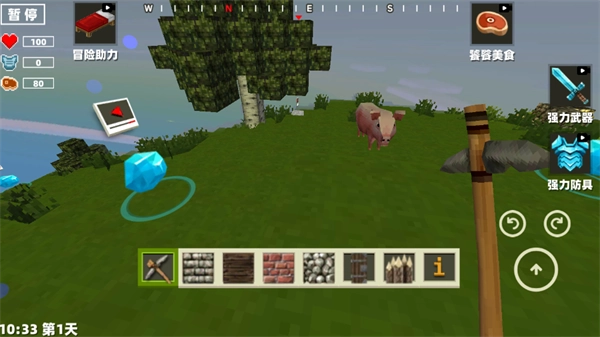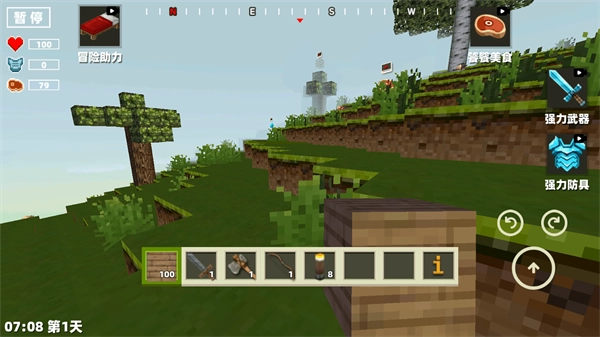 在游戏中,玩家能够利用其中的方块打造所需的武器与装备,并且还能够踏上探索世界的冒险征程。