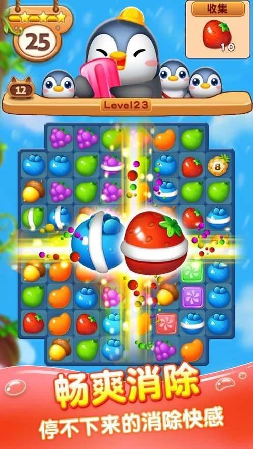 1. 快来消除缤纷水果,在趣味闯关中挑战各异关卡,尽情动脑思考,活跃自身思维。