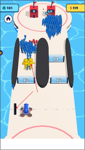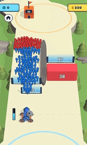 《突击对决》,一款让人心潮澎湃的休闲益智佳作。踏入突击对决的世界,你要凭借卓越的战术智慧与敏捷的反应,驾驭大炮,将大量蓝色小人喷射而出,奋力把它们送进倍数门,借此壮大自身军队,进而征服每一处基地!这是一场脑力与速度的激烈角逐,究竟能否化身最终赢家,全在你指尖的操作之间!