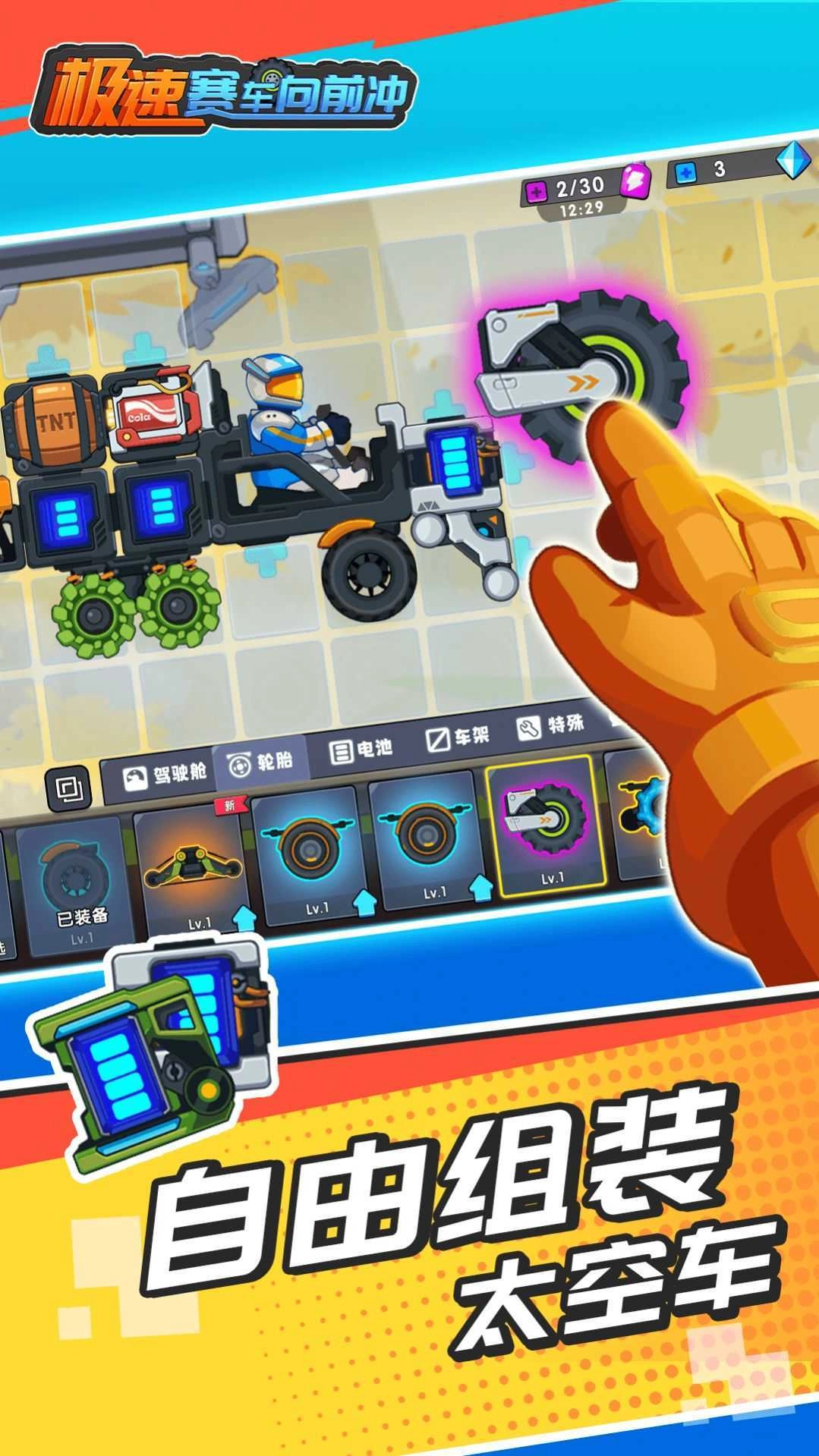 1. 进入《极速赛车向前冲》最新版游戏后,通过拖动下方物品就能对车辆进行改装。