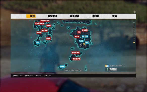 2、接着打开F1地图,按下鼠标滑轮键,确定据点位置,随后驾驶直升机朝着据点飞去。直升机的操作方式为:按shift键上升,按ctrl键下降,通过ASDW键控制飞行方向。