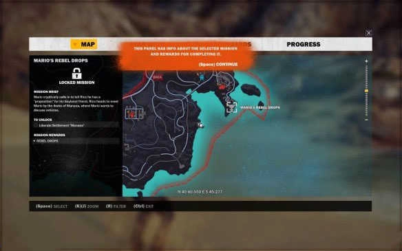 2、点击灰色牛头,就能查看该任务的解锁条件。马里奥的叛军空投这一任务的前置任务是解放马纳亚。