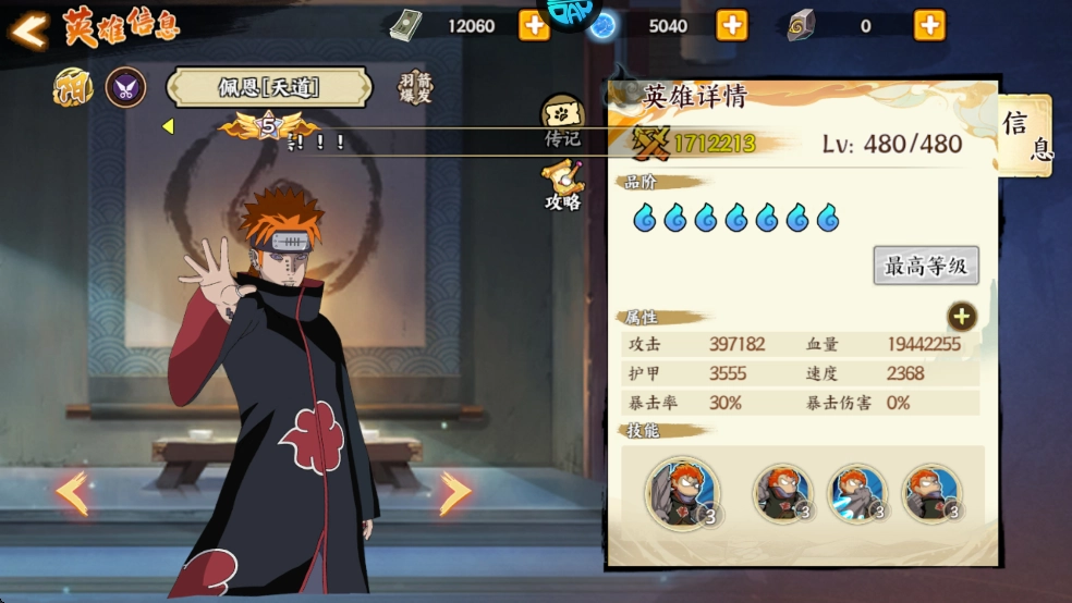 佩恩[天道]属于暴力输出型英雄。每个回合起始,其自身普攻会触发暴击,当队友施展战技时,佩恩[天道]能获取【雨虎】状态。【雨虎】不但能给予佩恩[天道]相当可观的攻击加成与减伤效果,而且在佩恩[天道]释放战技之际,可一次性将【雨虎】释放出去,进而造成大量额外伤害。