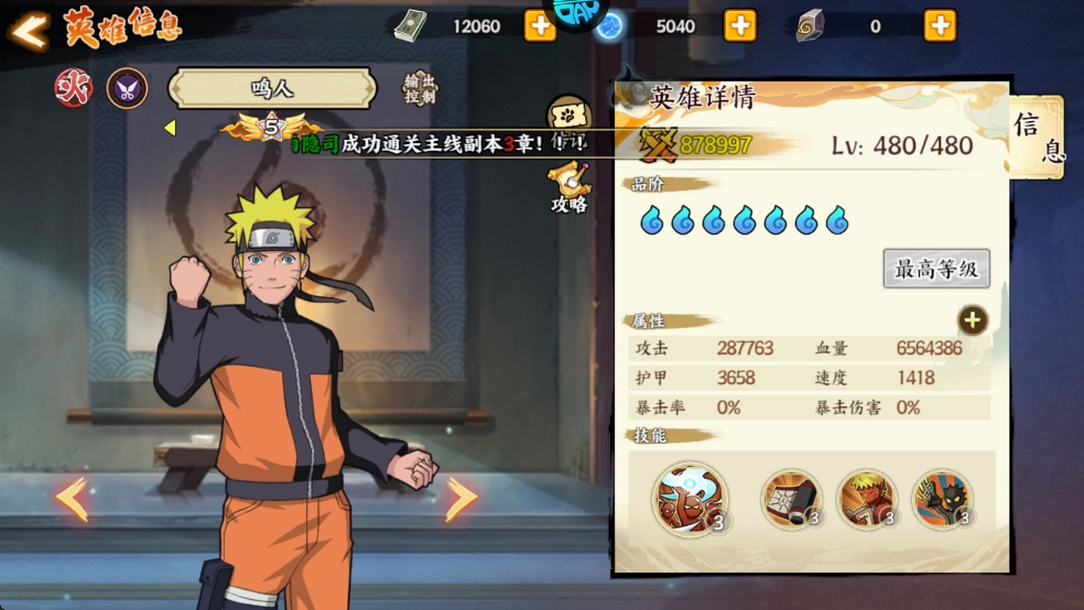 鸣人[疾风传]作为一名兼具控制能力的刺客型英雄,其技能能够为目标附上【眩晕】与【伤害标记】效果,在输出与控制方面均有所建树。当遭受暴击打击时,鸣人[疾风传]会对攻击者予以一次反击,进一步强化对敌方脆皮输出英雄的伤害。而当自身血量降至特定数值以下,他还能为自己施加高额的减伤比率,以此确保自身具备一定的生存能力。