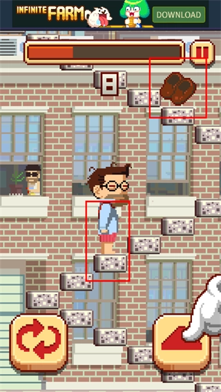 5、别看这游戏玩法简单,随着攀爬高度上升,游戏速度会越来越快,留给玩家的反应时间也越来越少,挑战性十足,快来试试吧!
