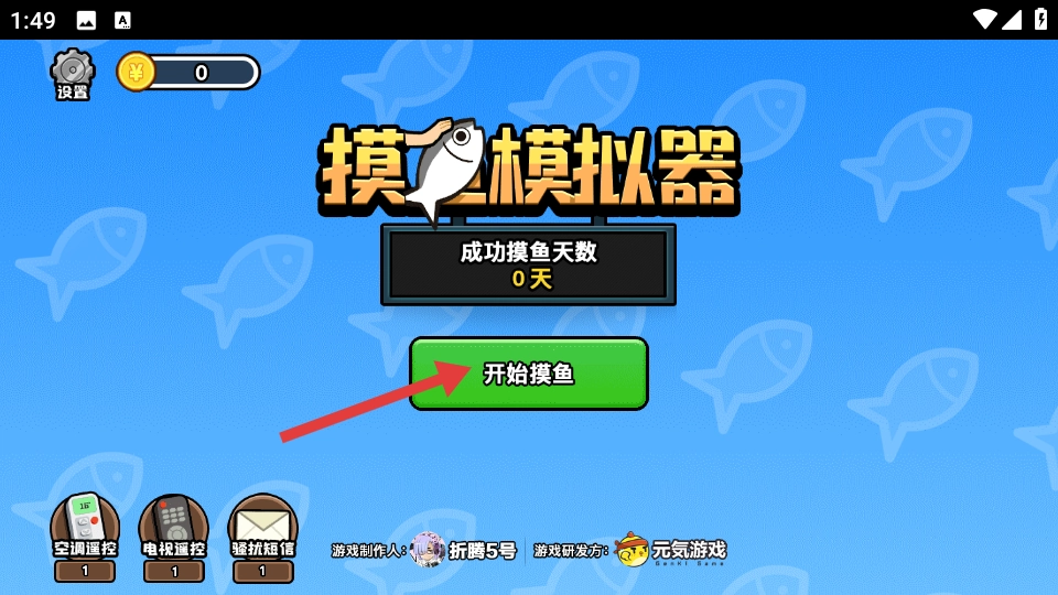 1、在主界面点击【开始摸鱼】按钮,即可进入游戏场景。