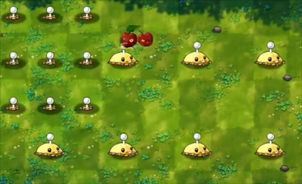 首先,我们来看,这是一个普通的坚果墙。那么当它遭遇樱桃炸弹时,会发生什么情况呢?