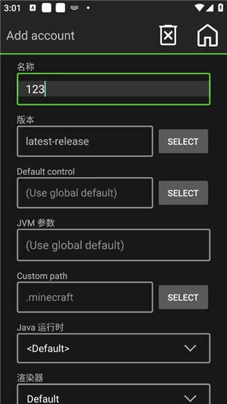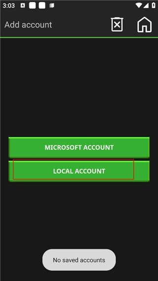 8、点击启动游戏后会进入此界面,该界面提示我们没有账户,此时点击“LOCAL ACCOUNT”即可创建账户。