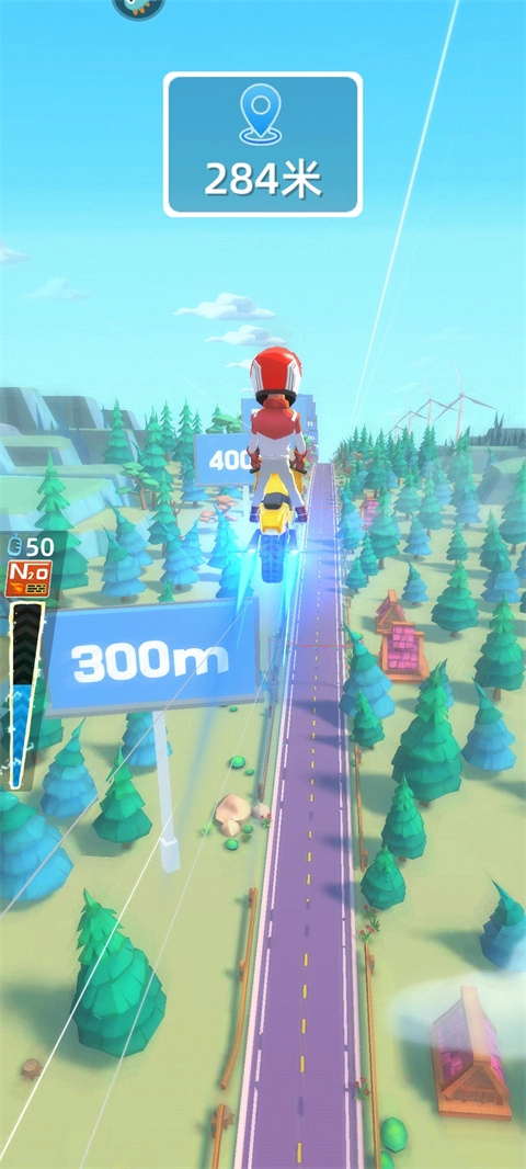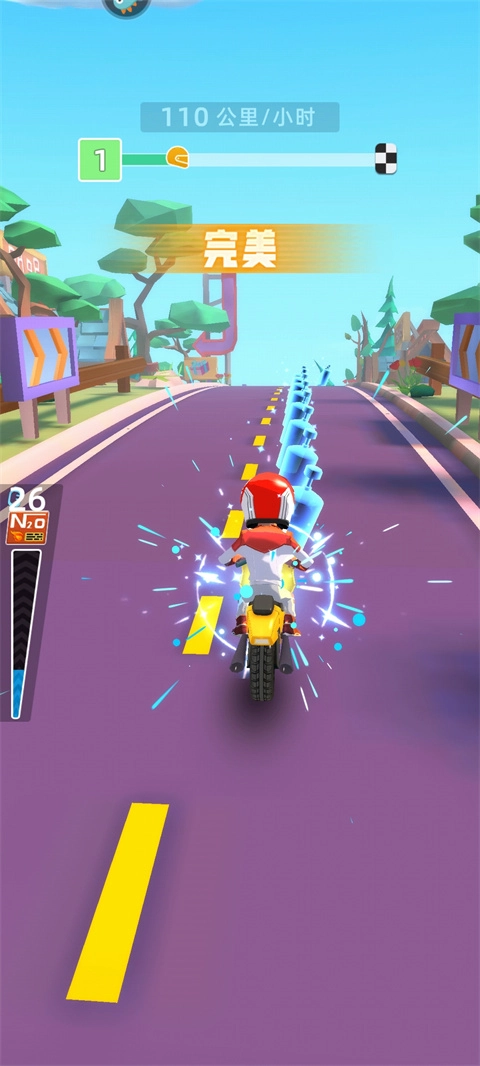 1、我们得通过左右移动来操控摩托车,让它碰到马路上的加油瓶,进而增加能量。