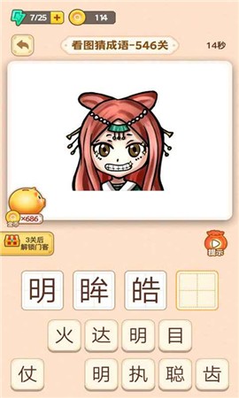 3、当你遇到未知的成语时,你也可以使用提示功能,系统会给你指示,帮助你完成答案。