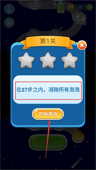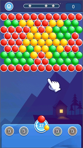 3、进入关卡后,轻点屏幕就能发射泡泡,当击中同色泡泡且数量超过3个时,这些泡泡就会被消除。