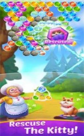 3、结合了很经典的泡泡射击,简单耐玩,运行流畅,还有可爱的动物一起来玩耍!