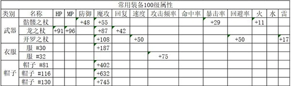 常用装备满级属性