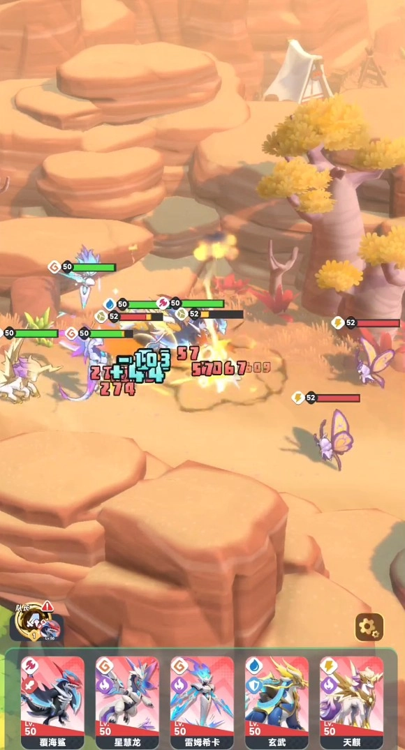 作为队长的覆海鲨,若为其搭配3个同系伙伴,便能触发增伤与城伤效果。土系的坚甲龟具备控制与护盾能力,菇隆隆可为队伍提供护盾和能量,岩煌作为刺客负责切入敌方后排。此外,紫月蝶可依据自身情况,替换成星级较高的爱宠。