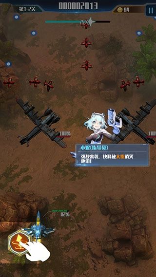 1. 只需按住屏幕并进行拖动,就能操控战机移动,同时战机将自动发射子弹。