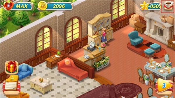 2、玩家能在游戏的过程中看到一点点装修到完好的餐厅,而且玩家能够自由的摆放各类物品。