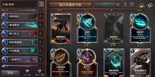 游戏开始时,务必将高魔力消耗的卡牌替换掉,不然会极大地影响战斗节奏。原因在于,不管是暗影岛还是诺克萨斯,都不具备主动抽取卡牌的能力。前期可以派出伊莉丝和小蜘蛛来抵挡敌人,拖得时间越长,我方获胜的概率就越大。到了后期,使用毁灭风暴去摧毁残血的主堡就行。