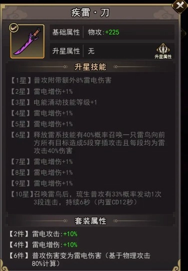 疾雷套装:这是专为主要使用雷元素技能加成的玩家打造的装备。集齐6件套后,角色的普攻会直接转变为雷元素攻击,妥妥的输出型装备套。我个人认为,对于那些没有双九歌装备的玩家而言,这套装备再合适不过了。雷系技能不仅具备眩晕效果,还能增加攻速,并且拥有范围持续伤害,真的相当不错!