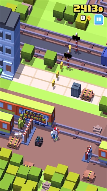 天天过马路是一款经典休闲无限闯关游戏,其英文名叫做Crossy Road。游戏采用了3D卡通像素风格,随机变化的场景。在游戏中,玩家会操纵一个由于赶时间而不得不冒险横穿马路的萌宠,每走一步记作一分,需要穿过更多的街道获取更高分数。同时,在横穿马路的过程中可以收集金币,金币可以用来解锁新的动物。当然横穿马路是非常危险的,玩家要看准时机从马路、河流、铁路等多种地形穿过,你还需要特别注意天空的老鹰,你不能在一个地方停留太久,不然它会吃掉你。除此之外,玩家可以在游戏设置中,登陆Google Play来保存你的角色、游戏进度、分数以及成就,就再也不用担心角色丢失咯,感兴趣的小伙伴快来体验吧!