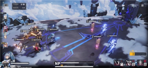 交错战线战斗玩法2:采用了全局资源运作的ATB回合制战斗机制。敌我角色在战斗中的行动顺序由速度属性决定。每个角色在战斗时都有普攻、小技能和大招3种基础战斗方式。使用普攻能够获取全局战斗资源NP。各个角色使用小技能和大招时直接消耗全局资源NP,且没有技能CD。只要攒够NP,我们就能在战斗时通过大招连发打出一连串的爆发伤害。