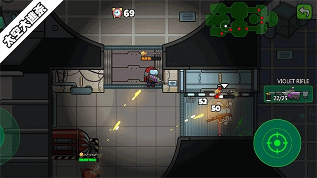 太空大逃杀,英文名“Imposter Battle Royale”,这是一款多人乱斗射击游戏。在游戏里,玩家会置身于太空环境,扮演一名船员。然而,由于飞船资源匮乏,船上爆发了暴乱,而你要做的便是活下去。此游戏包含四种模式,即生成模式、乱斗模式、防守模式与守旗模式。每个模式的游戏胜利条件各有差异,带给玩家的游戏体验也截然不同。玩家需在不同模式中运用不同技巧来获取胜利,为了生存可以不择手段,充分利用一切可用道具,从武器到防具,从机关到陷阱。只要能淘汰一名敌人,你的排名就会上升一位,获胜几率也会随之增加一分。