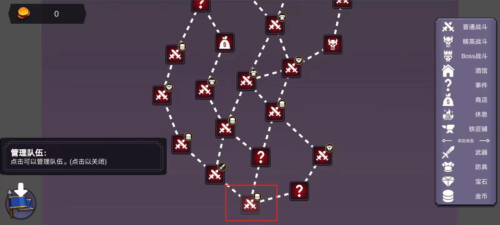 3、若要进行队伍管理,点击左下角的按钮。随后,点击下图所示位置,就能进入战斗。