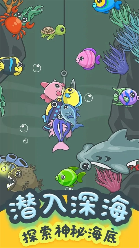 3、鱼钩入水后,玩家可以通过左右滑动屏幕来控制鱼钩的方向,寻找鱼群。