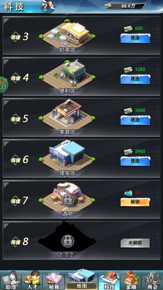 2、在收购地块过程中,谈判如同一场战斗,会耗费大量金钱。人才的综合能力越强,金钱损耗就越低,也就能够以更少的资金完成收购。要是系统提示损耗较高,此时不妨先去提升人才能力,从而降低损耗。另外,每次谈判都能获得阅历奖励,这些阅历可用于提升人才等级。每次成功收购地块后,便能够接着建造建筑,进而提高赚钱速度。