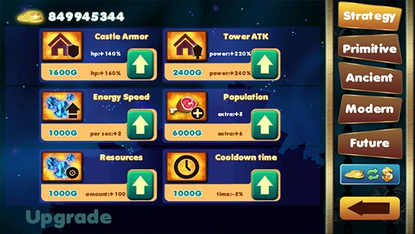 6、你还能在首页,点击“upgrade”对建筑物进行升级。