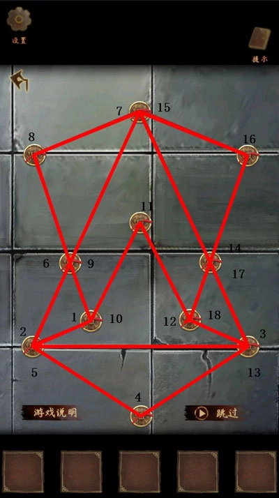 12、查阅游戏说明,完成一个连线小游戏(需连接三个点,起点和终点均为奇数点)