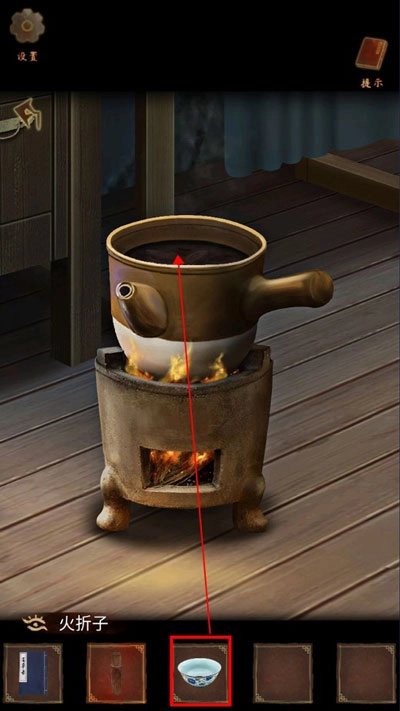 6、轻触药罐,依次放入三株草药,接着使用【火折子】引燃柴火。再次点击药罐,仔细查看游戏说明,随后完成小游戏。