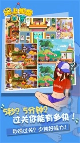 史上超难找茬是一款非常有趣的趣味休闲益智类找茬闯关游戏,玩家要在规定的五分钟之内找出所有的不同之处,超多关卡等你来挑战,感兴趣可以随时来,关卡的难度也是在不断的提升中的,喜欢玩找茬游戏的玩家可以来这款史上超难找茬游戏,精彩就在这里等你。快来试试吧!!