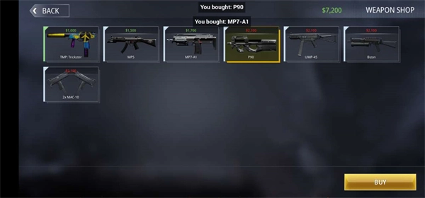 3、刚进入游戏时,我们使用的是手枪,这在游戏里获胜几率不大。因此,此时我们需要购买一把性能更好的枪,点击屏幕方向上方的购物图标即可。