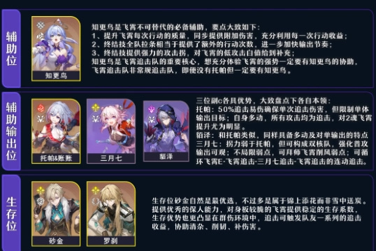 飞霄是当前版本推出的全新角色,具备极为强大的实力。各位可依据下图所示来进行角色养成。