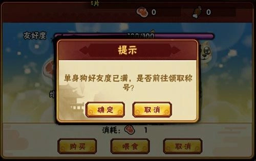 3. 只要与单身汪的友好度升至100,就能开开心心地把它领回家咯!当单身狗友好度达到满值后,便可前去领取称号啦!