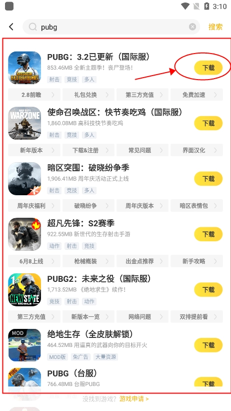 2、等待搜索结果呈现,届时会出现包括pubg国际服在内的多个版本,您可从中挑选所需版本。