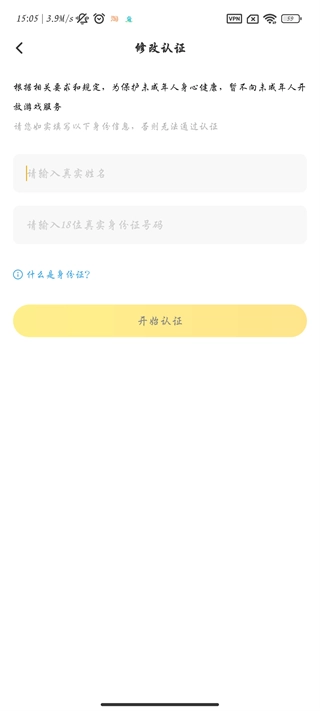5、填入最新的实名信息,点击下方“开始认证”按钮即可。