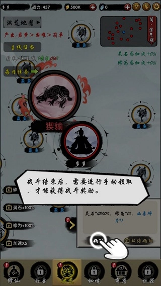 战斗结束后,需手动领取方可获得战斗奖励,具体如下(见图):
