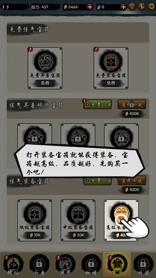 获取装备后,紧接着点击“修仙”。在此处,你能够为角色穿戴装备。但在穿戴装备之前,建议先查看装备的属性,因为装备强度越高,角色所具备的能力也就越强。