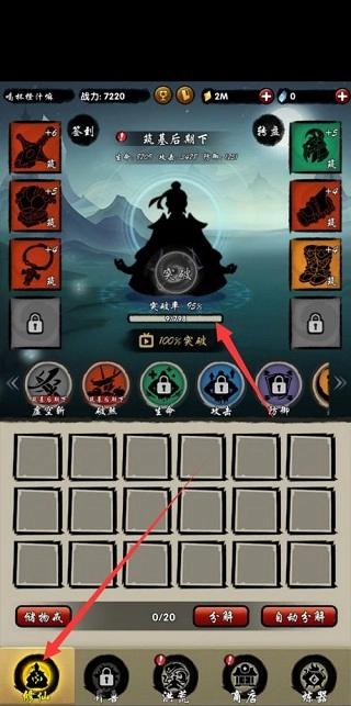 首先,点击箭头所指的修仙页面,于箭头指示的地方查看突破所需的修为。