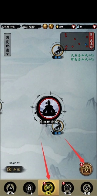 第一步,依照系统指引,点击此处,开启你的修仙征程。
